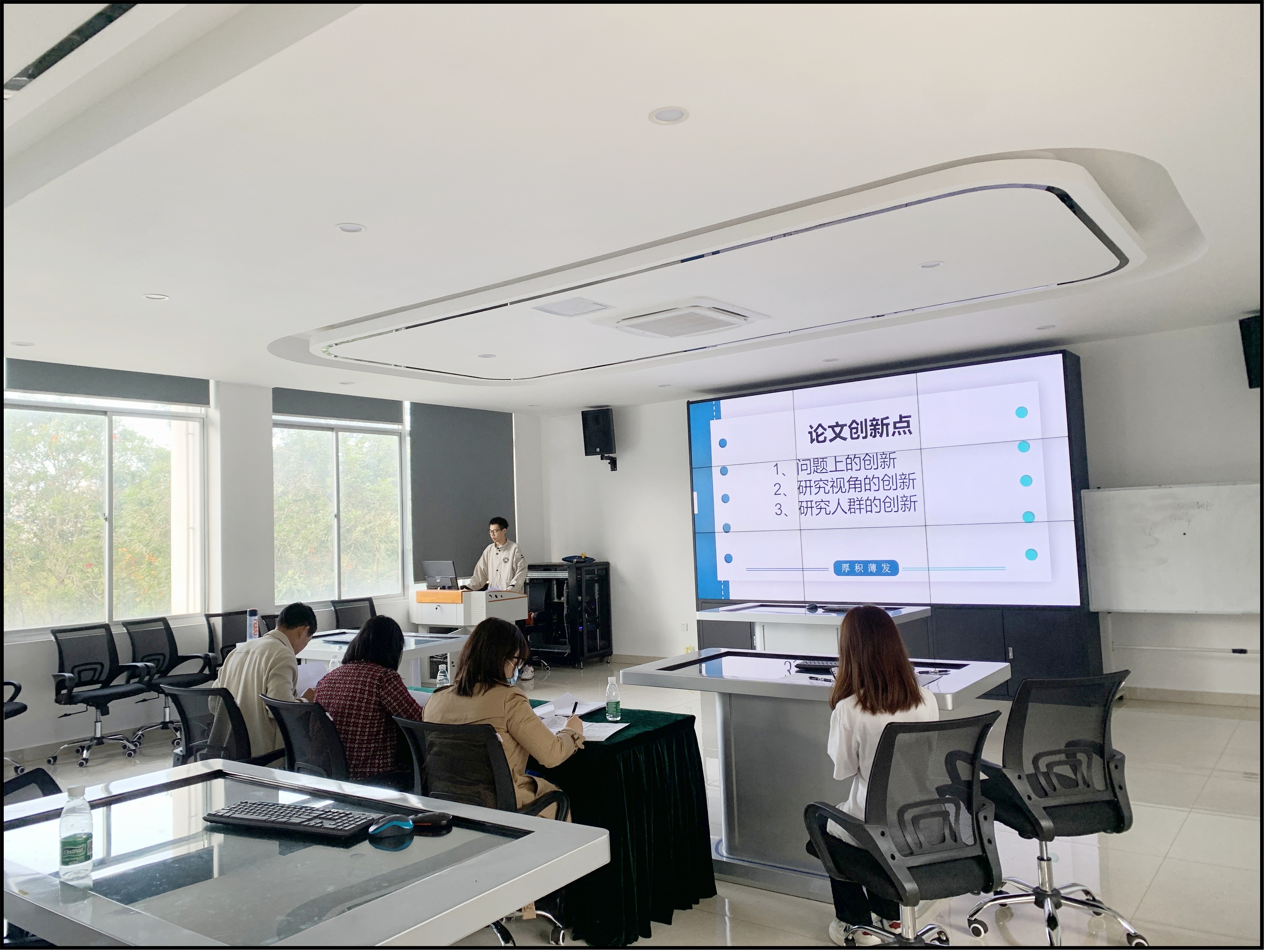 答辩会上,员工通过PPT展示,详细介绍了选题背景、研究意义、研究现状、研究方向、创新点和论文框架等内容。各答辩小组老师从论文选题的意义于背景、论文综述的全面性、参考文献的规范性和合理性等多方面对每位员工的选题报告做了详细且专业的点评,针对员工的汇报提出不足以及修改建议。