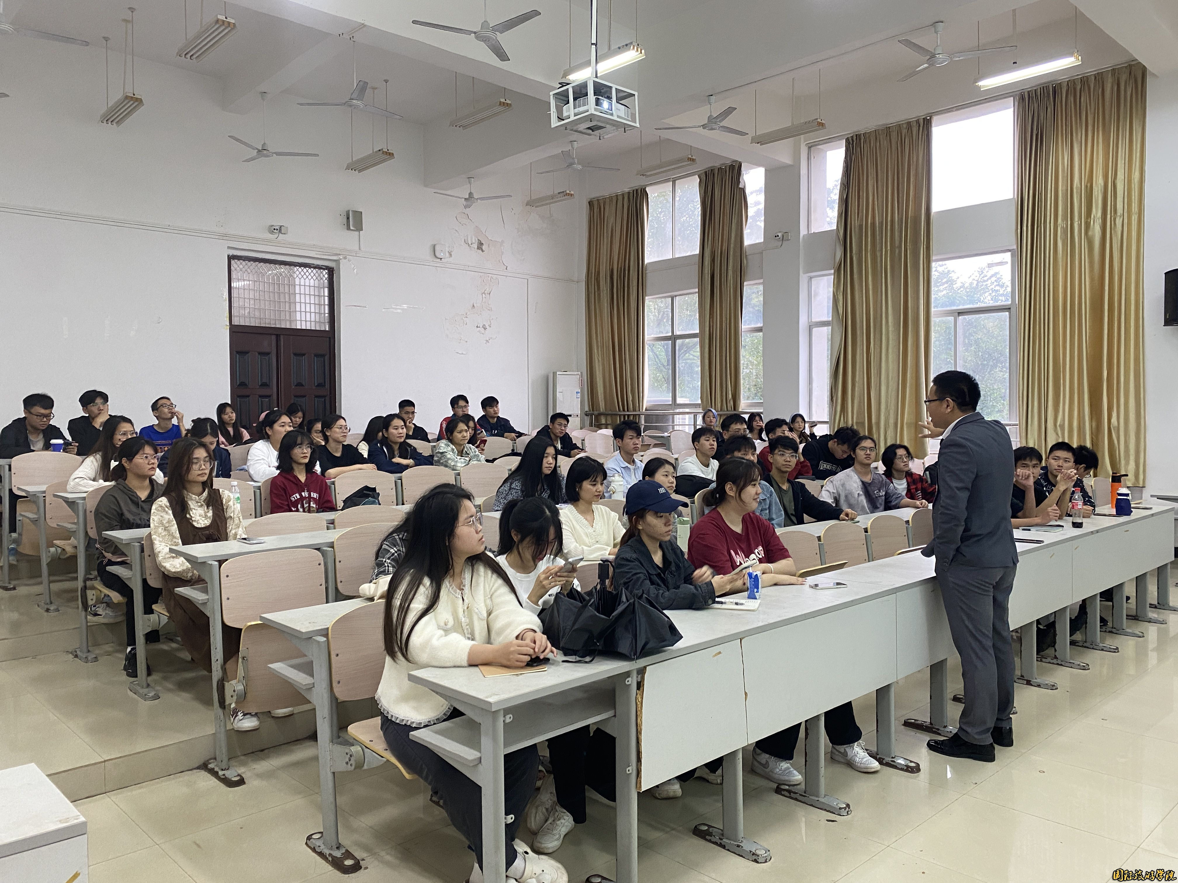 1114日下午,第一场讲座上半场主要为同学们提供导游风采大赛相关指导,敖老师从讲解内容的选择、导游词的创作、舞台的呈现效果等各方面一一解析。同时,也邀请赛事负责人常晓芳老师现场就赛事相关问题进行答疑解惑。讲座下半场主要分享导游资格考试科目五《导游服务能力》的内容。敖老师结合自身多年的培训经验和担任主考官经历,为同学们提供考试指导,传授考场应试技巧。