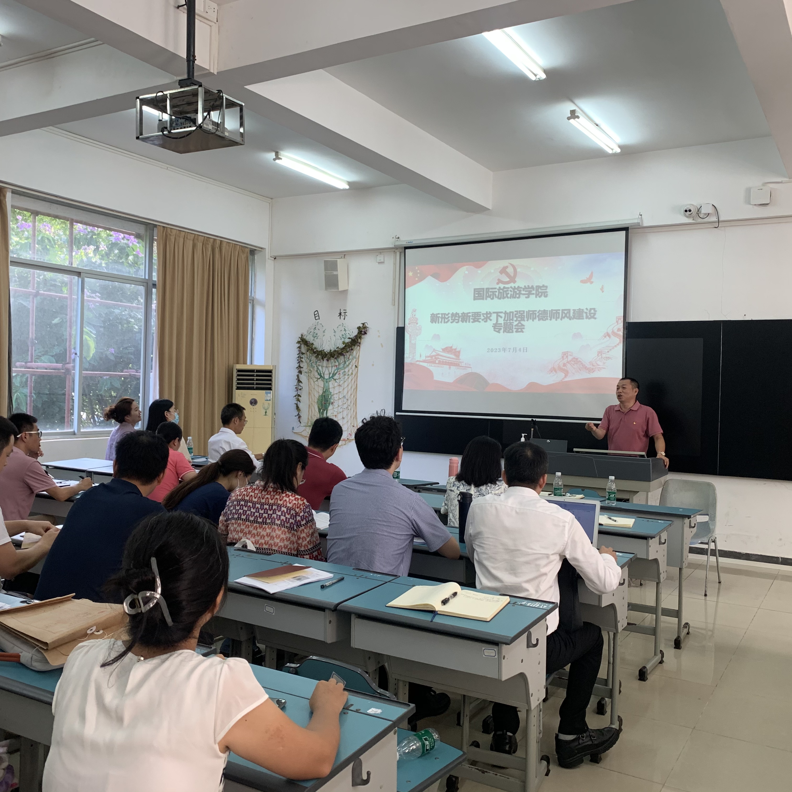 孙金从专题教育基本情况、学习《新时代高校教师职业行为十项准则》、强化师德师风建设的举措三个方面与全体教职工分享。并强调:作为教师,我们要以立德树人为根本任务,以为党育人、为国育才为根本目标。教师的工作不仅仅是传授知识,更重要的是引导员工成长,让他们受到正确的教育和引导,树立正确的人生观、世界观和价值观。
