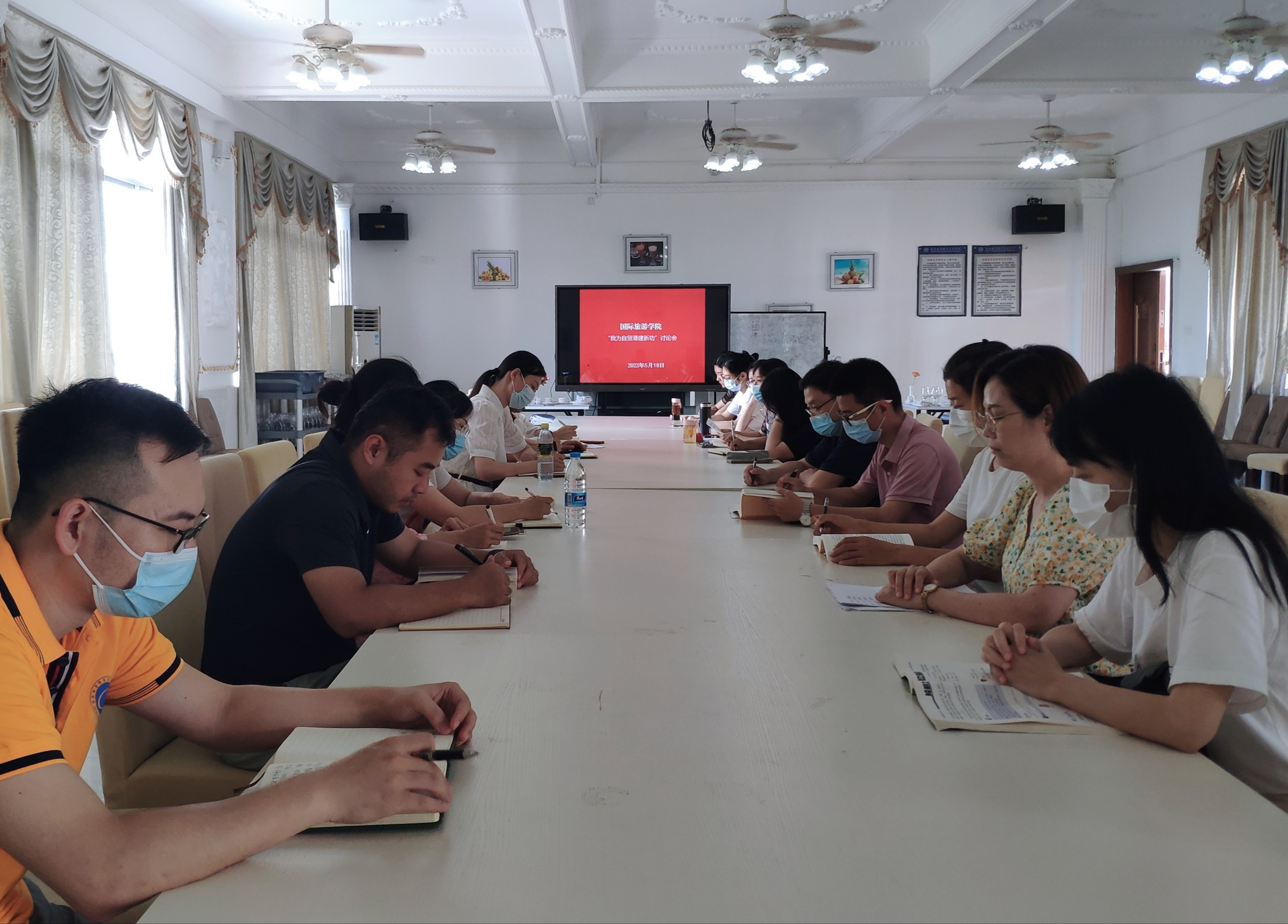 5月18日,公司党总支开展“我为自贸港建新功”讨论会,公司党总支书记孙金、党总支副书记刘萍男、副经理王晓明、各专业教研室负责及全体教师党员参加讨论会。孙金主持会议。