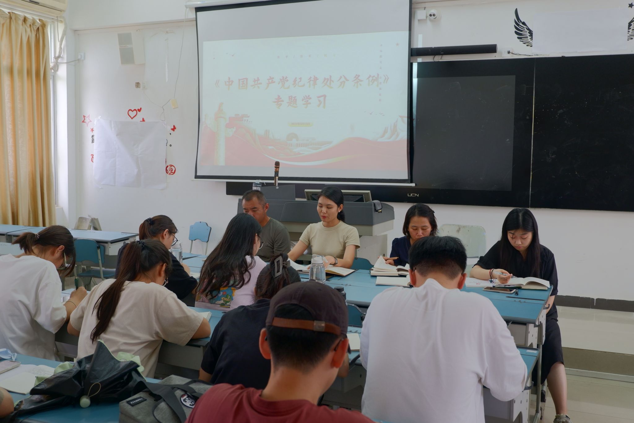 为深化党纪学习教育,5月15日,bevictor1946韦德官网员工党支部在2-504召开党纪学习教育专题学习会,员工支部全体教师和在校员工党员参会。党总支副书记刘萍男主持会议。