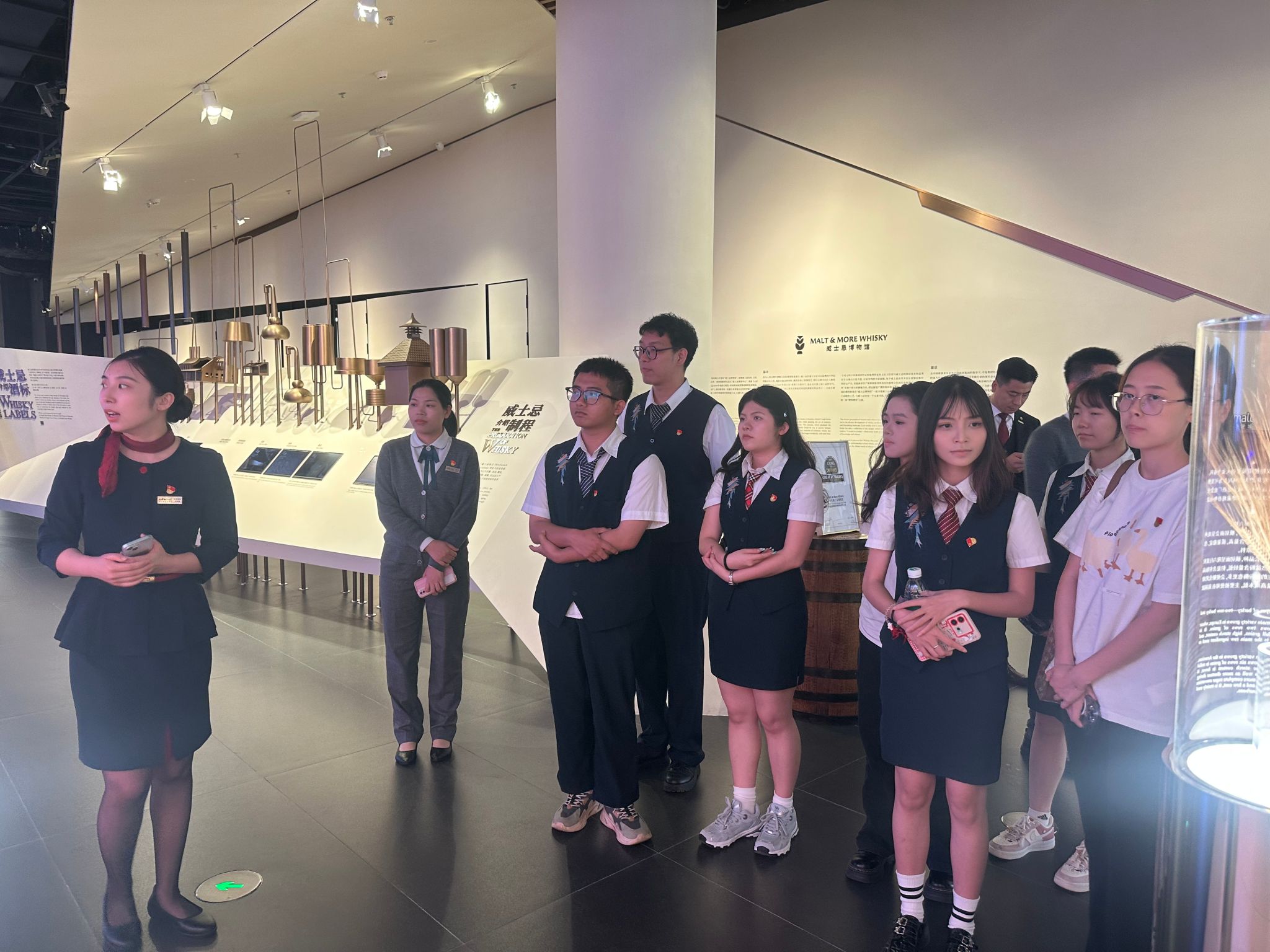 在博物馆讲解员的引导下,师生党员系统了解了威士忌酿造工艺的百年演变、全球酒文化发展脉络,以及海南自贸港政策对进口酒类产业的推动作用。通过历史文献、酿造器具展陈及全息影像技术,党员们深刻感受到“工匠精神”的文化内核,激发了对文旅产业创新与传统文化传承融合的思考。