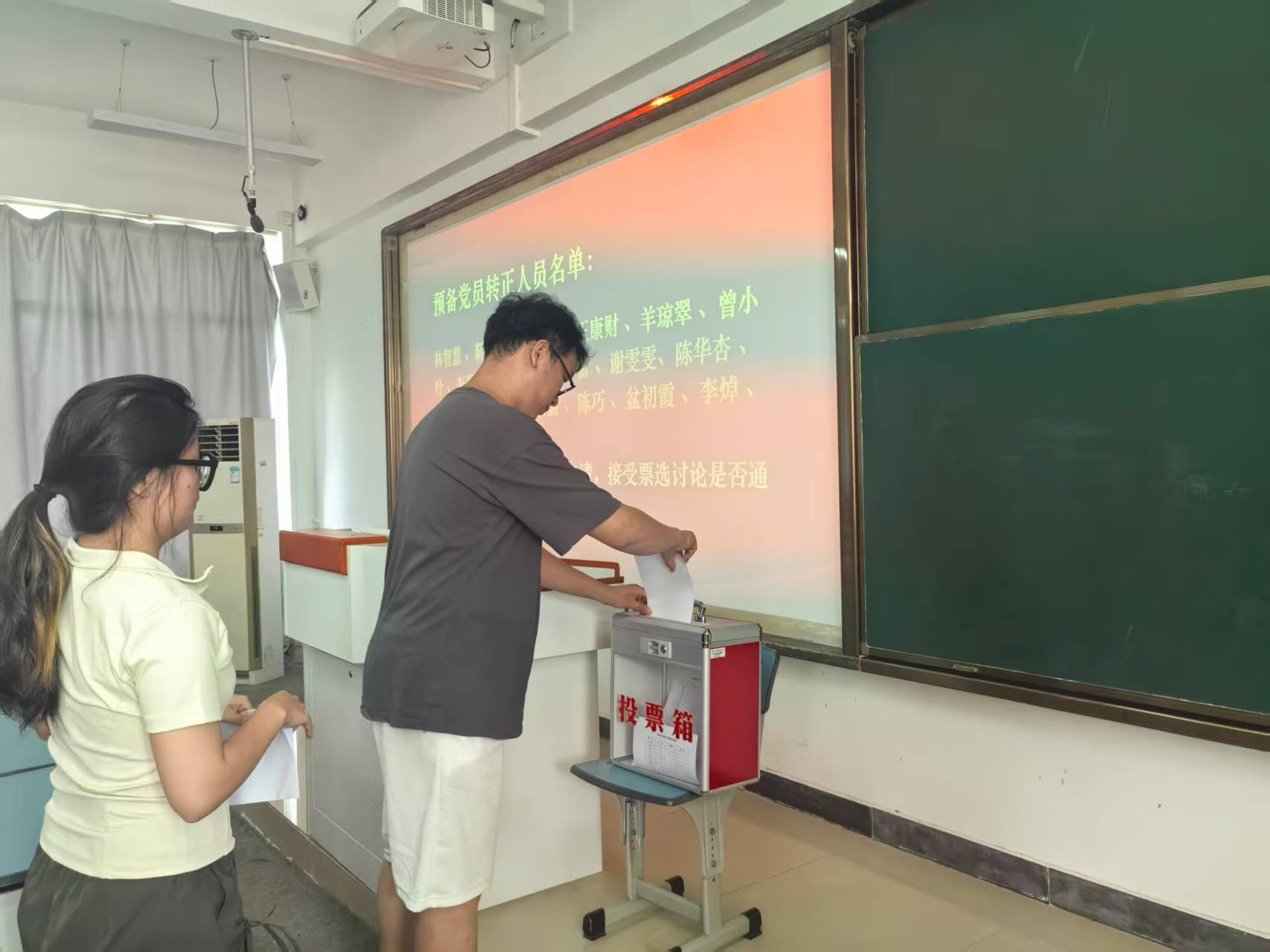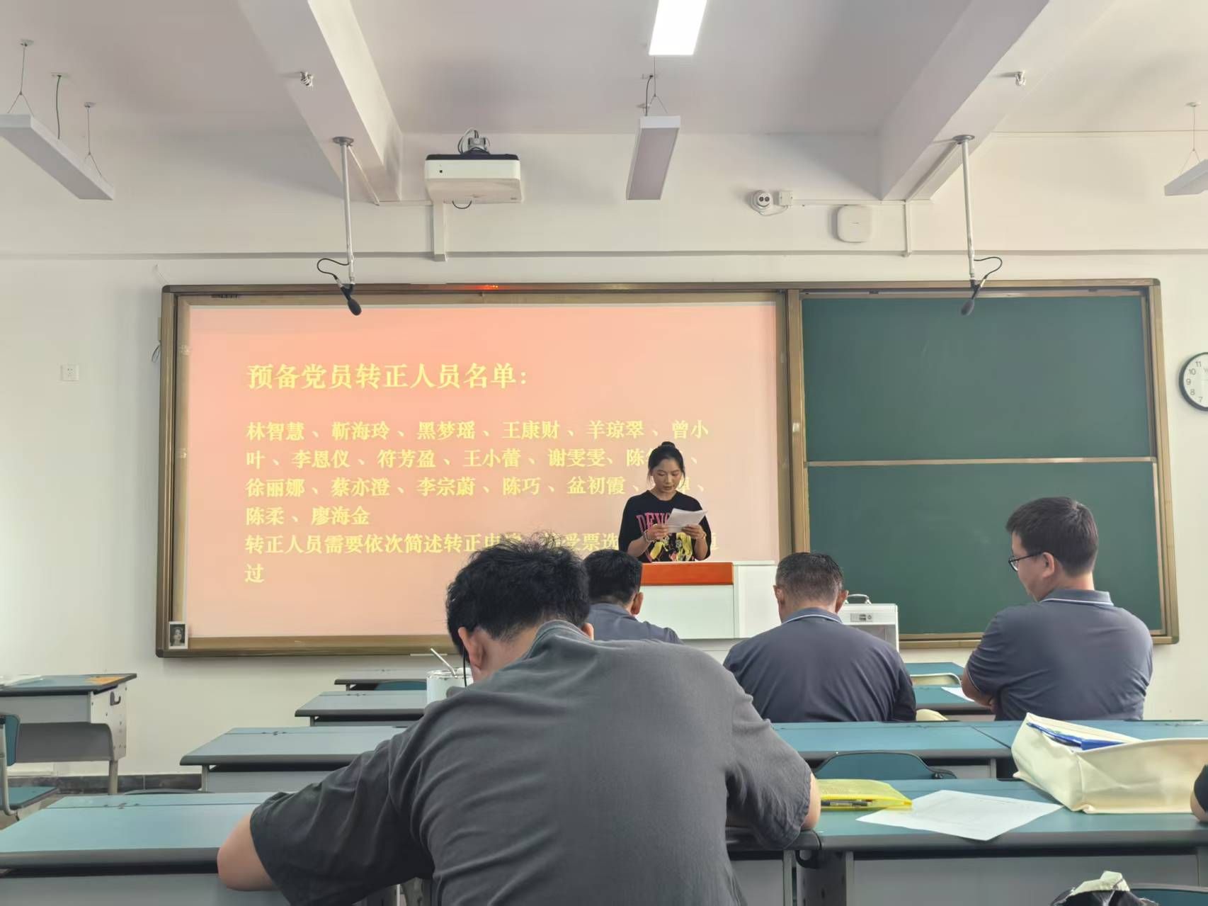 2025年6月18日上午,bevictor1946韦德官网员工党支部于2教506召开预备党员转正大会,会议讨论林智慧等十九位预备党员转正事宜。会议由员工党支部书记李越主持,大会应到正式党员40名,实到28名,符合会议召开条件。