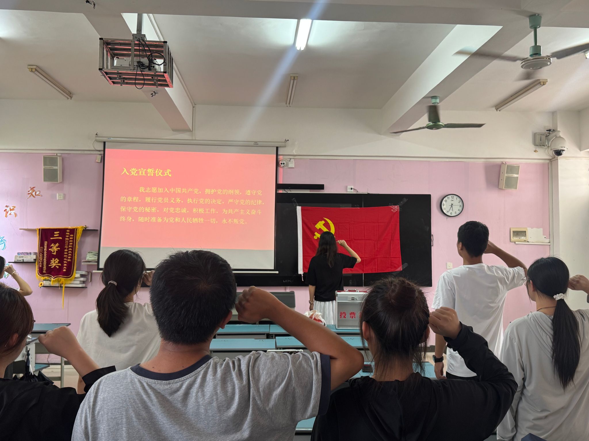 最后,新接收的预备党员在党旗的见证下,郑重宣誓,“我志愿加入中国共产党,拥护党的纲领,遵守党的章程,履行党员义务……”,以坚定的誓言表达了对党的无限忠诚和为党的事业奋斗终生的坚定信念。与会党员也共同重温了入党誓词,进一步坚定了理想信念和使命担当。