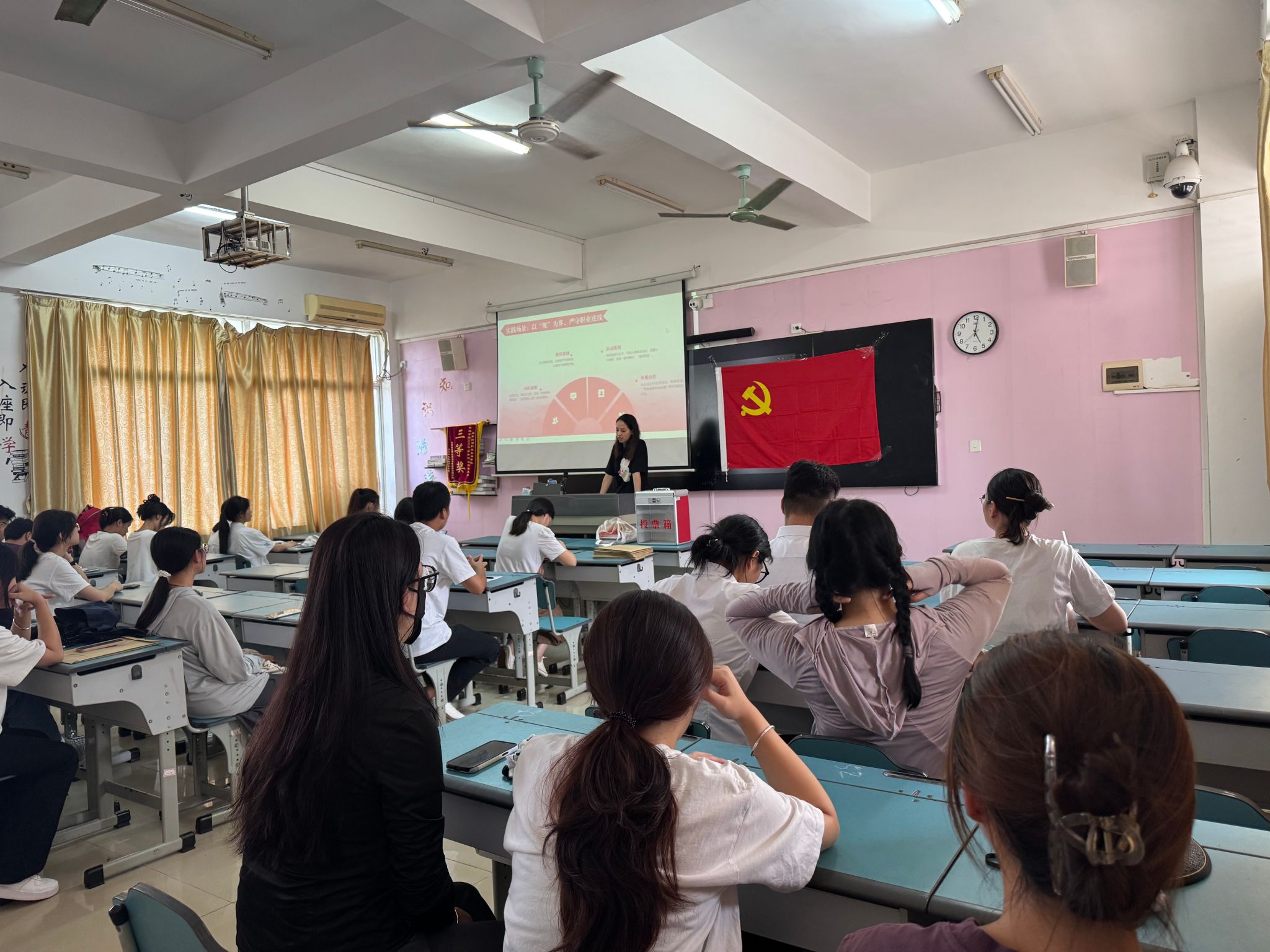 随后,入党介绍人依次对每位发展对象从学习,工作,生活等多个方面进行了深刻而详细的介绍。他们在肯定发展对象在培养期间的优秀表现的同时,也明确地指出了其需要改进和提升的地方,给予了发展对象一定的建议。经过与会党员的热烈讨论与充分审议,大家一致认为这20名发展对象已具备成为预备党员的条件。最终,大会以无记名投票的方式,一致通过了接收这20名同志为中共预备党员的决议。李越同志代表党组织对新发展的预备党员表示热烈祝贺,并对他们寄予厚望。她鼓励新预备党员要以正式党员的标准严格要求自己,在学习党的理论知识过程中,深刻理解党的初心使命;在参与志愿服务、社会实践时,更加深刻认识到党员肩负的责任,争取早日成为一名合格的共产党员。