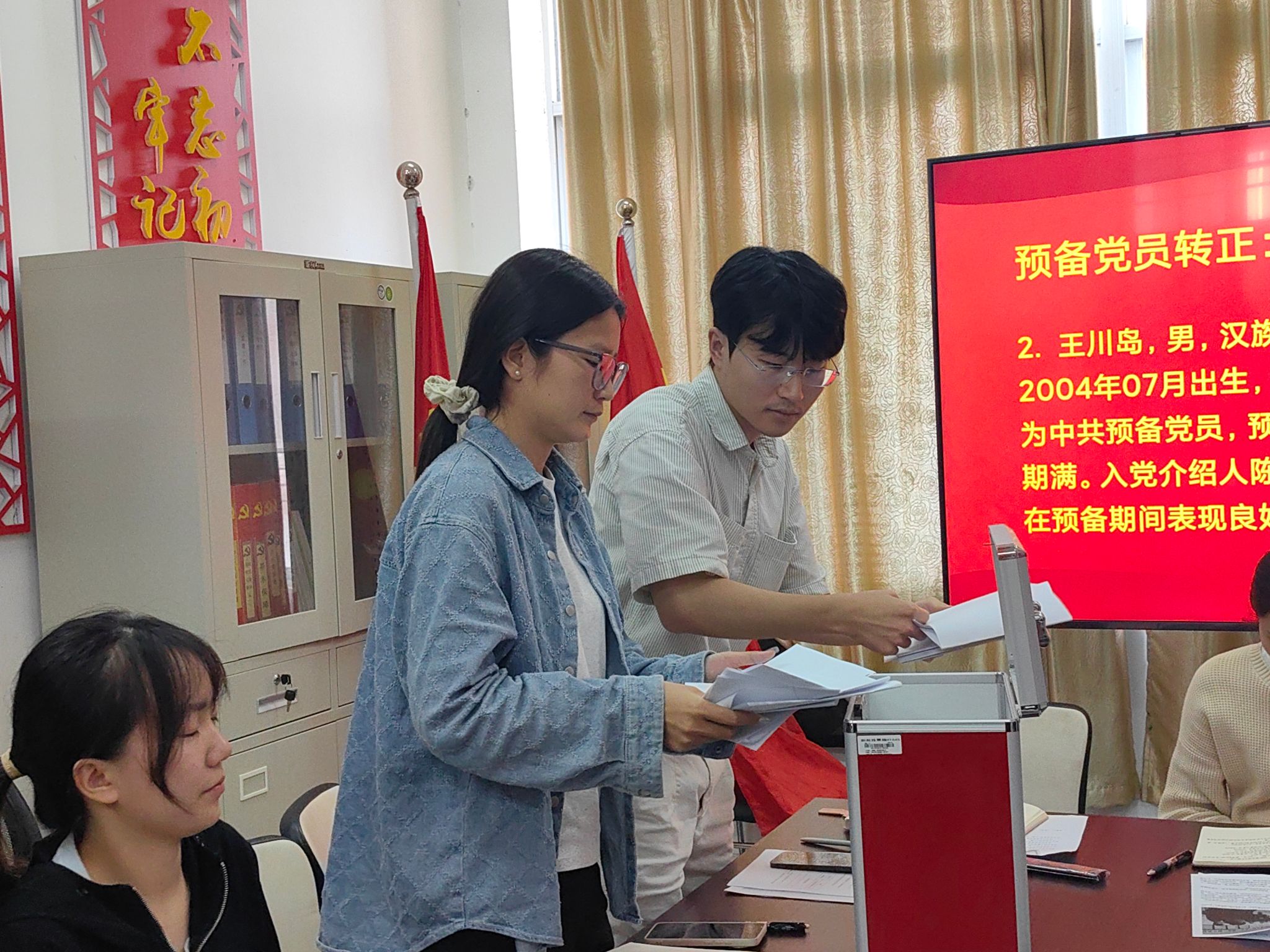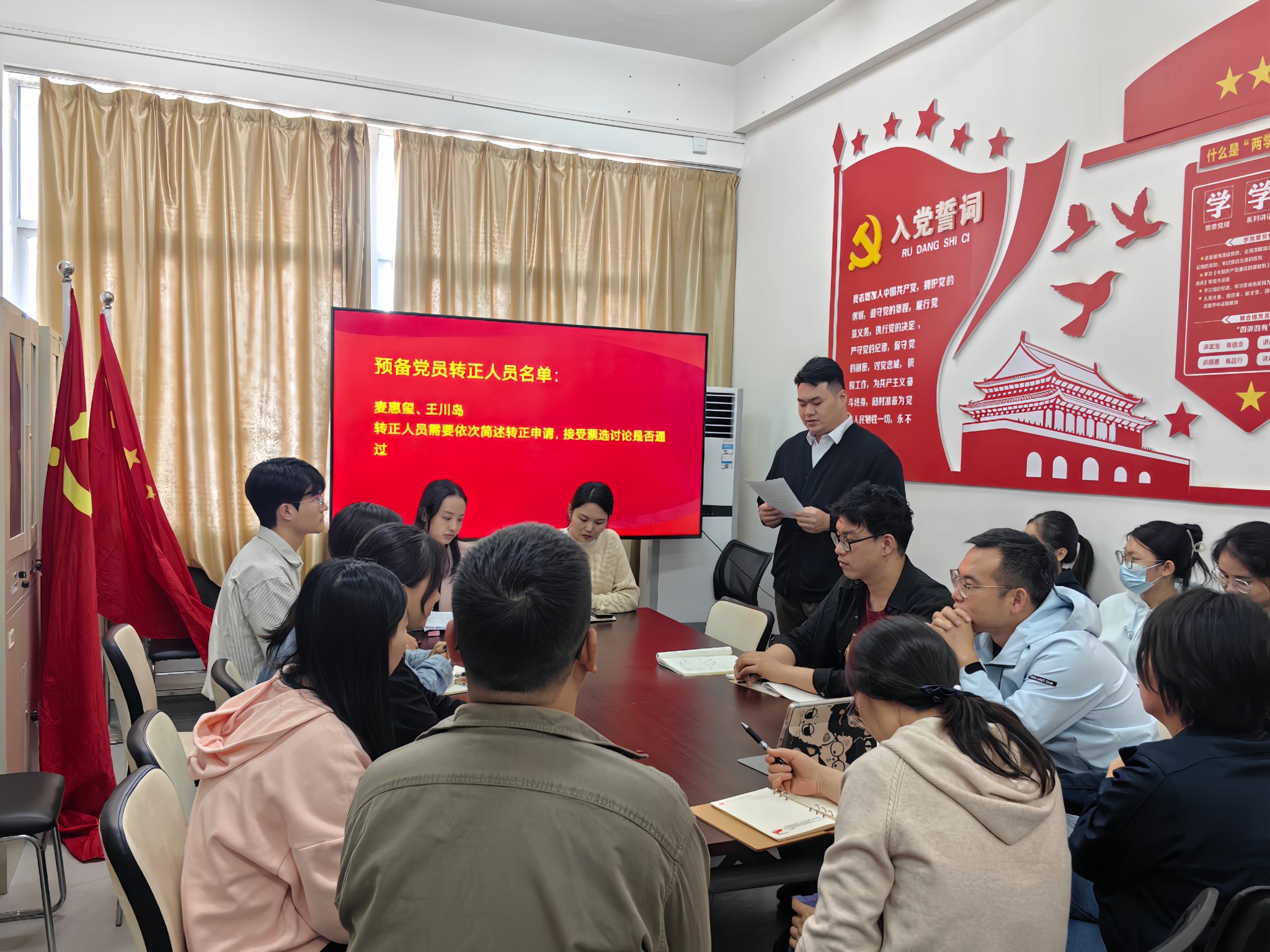 会议严格按照党员发展程序进行。两位预备党员向大会汇报了自身在预备期间思想、工作、学习等方面的表现,表明自己加入中国共产党的坚定决心。入党介绍人和支部委员会分别介绍了两位同志在预备期间的表现及教育、考察情况,均同意他们按期转正。与会党员针对两位同志的表现充分发表意见并提出期望。大会以无记名投票方式表决,全票通过两位同志按期转正。