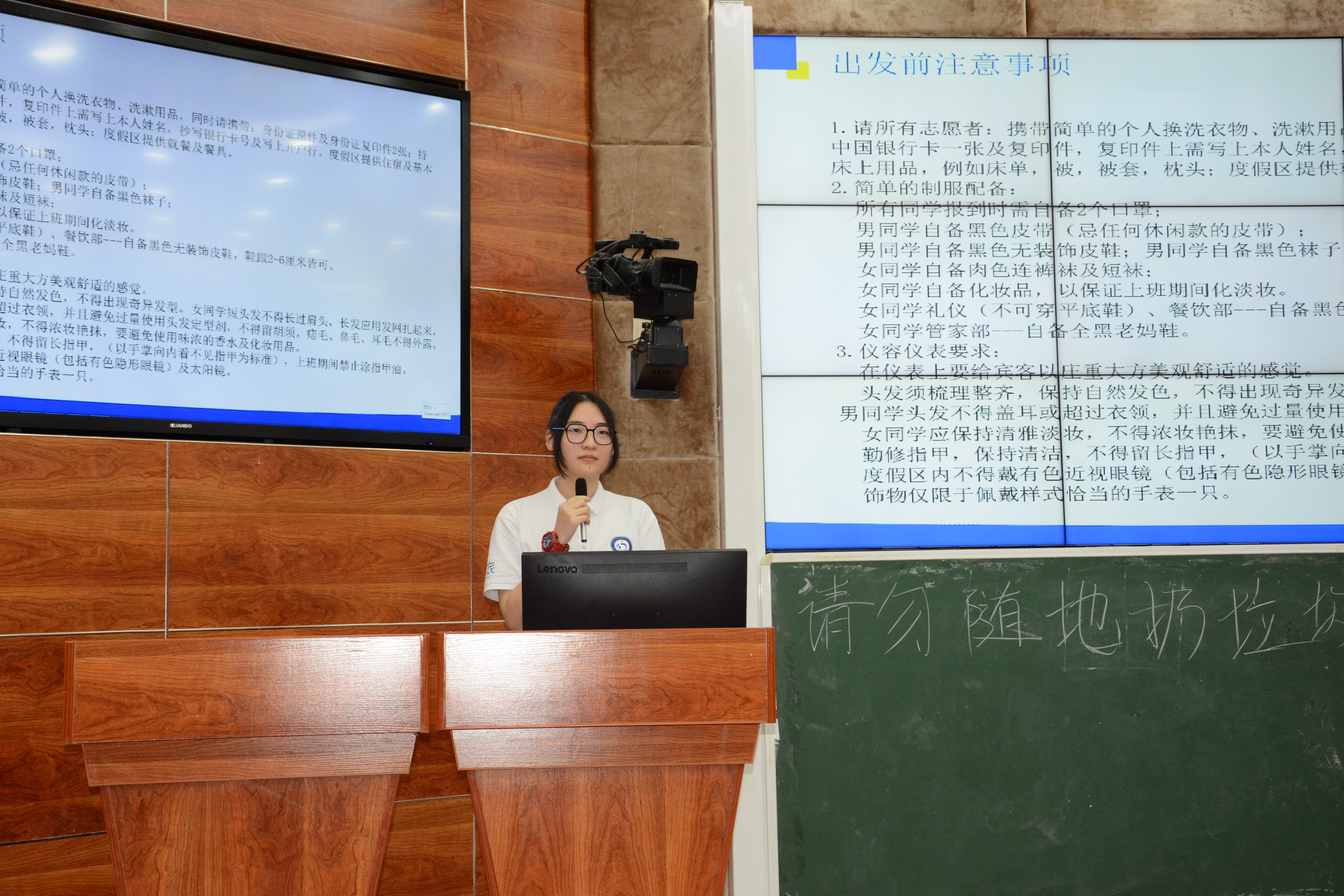 “在博鳌亚洲论坛当一名志愿者是什么体验?”,“在开展志愿服务活动前需要有什么准备?”当新队员们从前辈手中接过接力棒时,这些都是他们关心的问题。周晓莹是公司青年志愿者协会会长,同时也是今年公司博鳌师生志愿服务队员工领队,在年会开始前四个月,她就已经开始着手志愿者招募、面试、政审、培训等筹备工作。动员会上,虽说同是博鳌志愿者“新人”,但面对队员们的提出的论坛年会的规模、志愿服务工作内容以及文明礼仪要求等问题,她都能稔熟于心,娓娓道来。