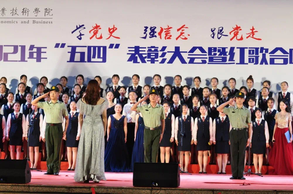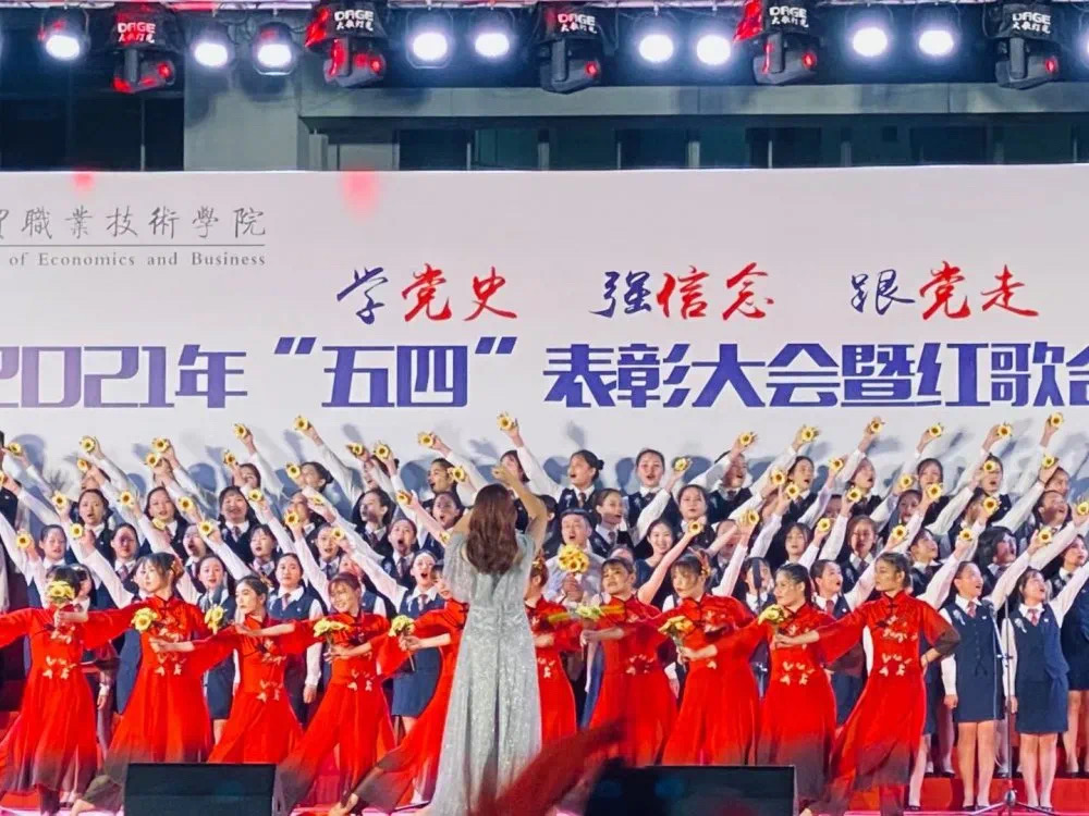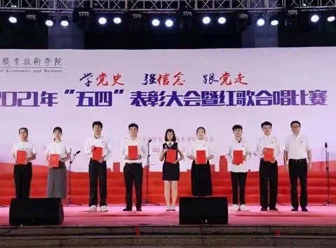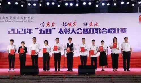 2021年5月7日晚,2021年“五四”表彰大会暨红歌合唱比赛在经贸广场隆重举行。