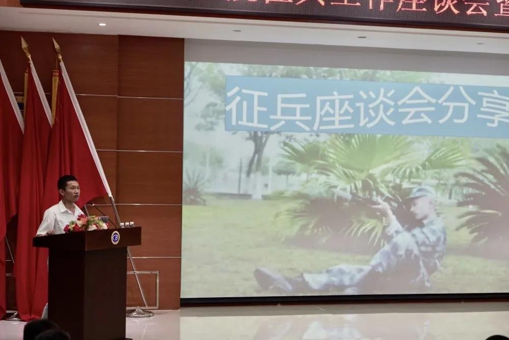 会议第二项,由五名退伍军人分别给大家分享了自己的军营工作和生活。一张张军营照片不仅勾起了五名退伍军人的军旅记忆,也激起了同学们对军旅生活的兴趣和向往。