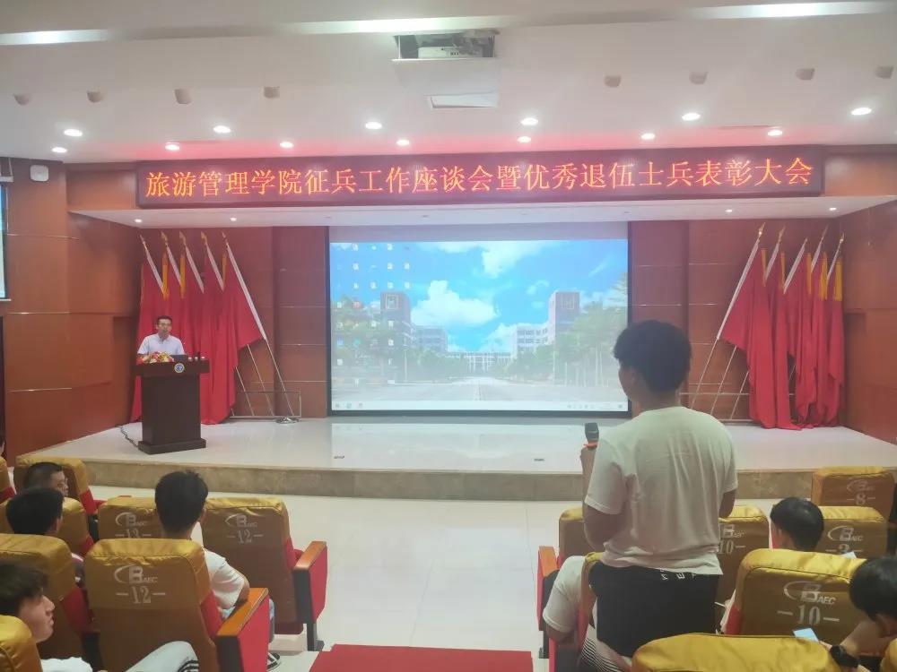 为积极响应国家征兵的号召,巩固国防建设,圆满完成2021年征兵工作,公司于2021年6月8日在经贸宾馆学术交流中心召开了老员工征兵工作座谈会。出席本次会议有公司党总支符胜书记,辅导员符珍、陈俊池、樊靖、张强老师,退伍军人代表郑馨瑞、邱宇、黄位重、赵家珩、邓美鑫五位同学,2019级全体男同学及2020级员工代表。会议由秘书处程焕杰主持。