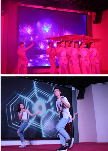 晚会形式内容丰富多彩,美妙的音乐,精彩歌舞,绚丽的灯光,深深陶醉了现场每一位观众。有青春活力的《lucky  strike》爵士舞蹈;有高雅的钢琴自弹曲目《克罗地亚狂想曲》;有带入梦幻的民族舞蹈《丽人》;有激情澎湃的朗诵《祖国啊,我亲爱的祖国》;有深情的情歌对唱《凉凉》;有体现公司学子礼仪形态的职业装展示;以及实习单位选送的擒拿格斗表演、黑夜电光舞……最后在公司团总支员工会自己编词的《经贸南路的日子》歌曲中落下帷幕。