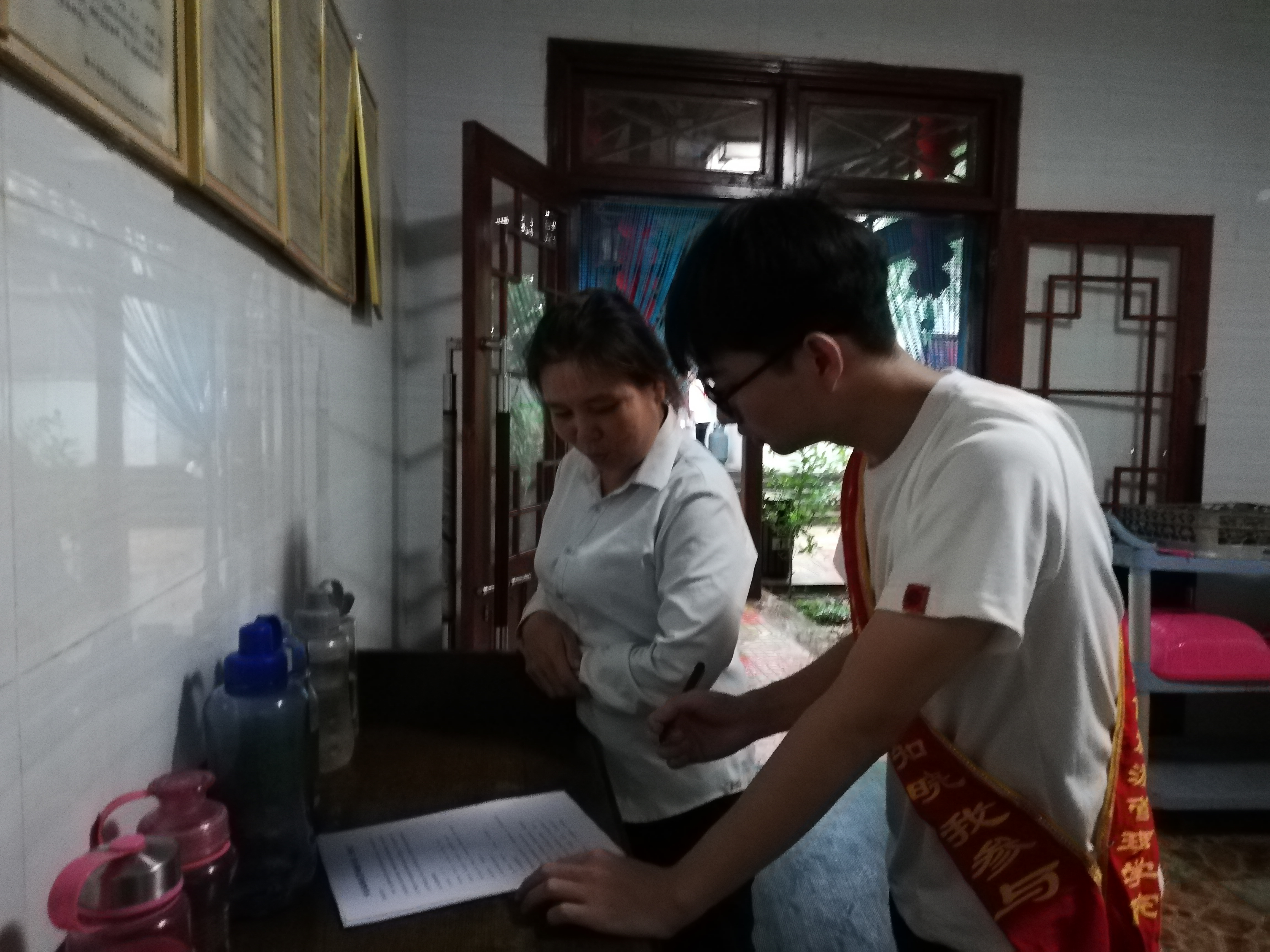 以对海南省乡村旅游扶贫调查和服务提升培训为目的,我们的团队冒着大雨驾车来到泮边村进行入户调查,和进行礼仪和餐饮方面的培训。到达目的地之后我们马不停蹄展开了调研,发放调查问卷,并与当地第一书记进行一番深入的交流探讨。经过交流后我们了解到本村的交通不便利、基础设施建设的不完善以及本地村民文化水平的受限。因此我们认为,在乡村旅游迅猛发展的时代,我们不仅要看到其给我们带来的利,也要关注弊,并且解决或改善。 图为小组成员帮助村民填写调查问卷后并于村干部的合影。中国青年网通讯员 穆雪茹摄