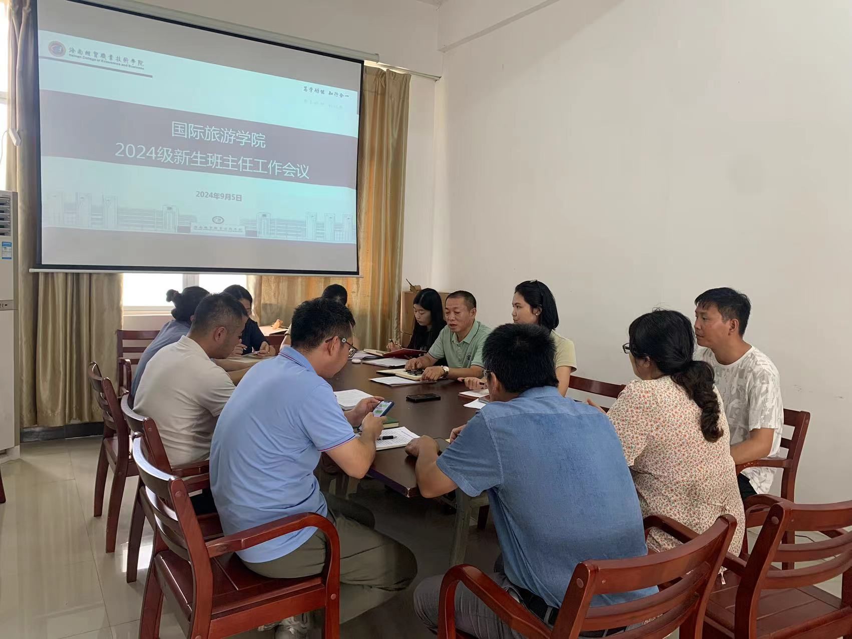 会上,刘萍男通报了2024级新生录取和分班情况,并与大家共同学习了班主任工作管理办法。会议要求,新生报到后,班主任要引导员工培养良好行为习惯,要经常深入班级和宿舍,加强互动与交流,了解员工动态,做好班干部培养和竞选等工作,尤其要把控好批假事宜。