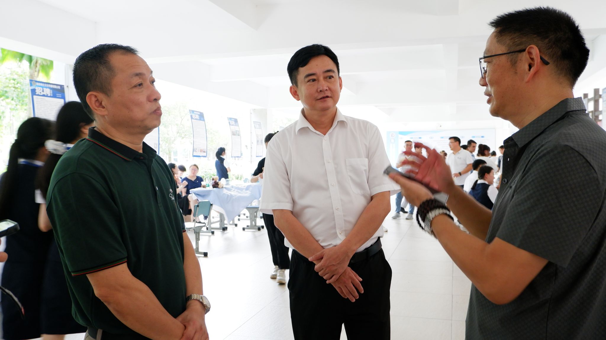 在双选会就业指导咨询处,公司党总支副书记刘萍男、各教研室负责人为同学们提供就业指导,帮助所有有求职需求的员工进行就业规划和面试技巧指导、优化简历、了解求职意向,并根据需求推荐岗位。