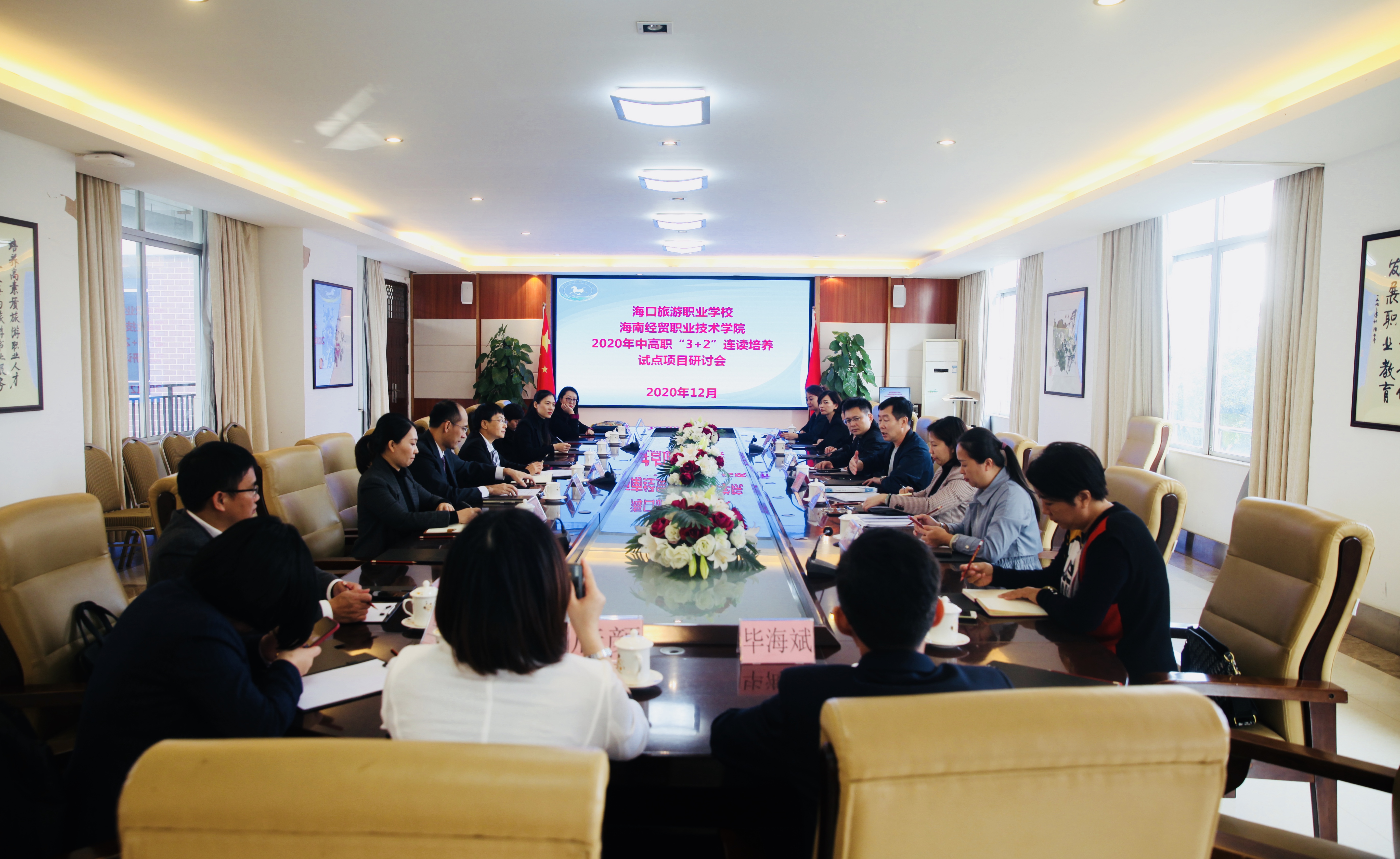 (旅游管理公司冯玥老师报道)2020年12月4日bevictor1946韦德官网旅游管理公司副经理陈晓鹏携酒店教研室专业教师、以及酒店管理专业指导委员会委员一行15人前往海口旅游职业公司,就“双高”建设、中高职“3+2”连续培养试点项目、校企合作等事项进行交流学习。