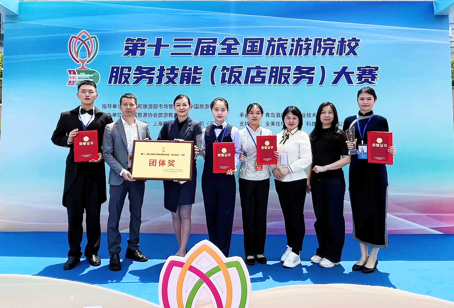 2023年5月11日--14日第十三届全国旅游院校服务技能(饭店服务)大赛在山东青岛酒店管理职业技术公司正式打响。经过层层拼搏,公司酒店管理与数字化运营专业的师生们凭借着过硬的专业技能,展现了公司师生的风采,创造了历史上最辉煌的成绩。荣获3项一等奖,1项二等奖(位列二等第1名),团队总分位列全国第七,荣获大赛优秀团体奖等佳绩。