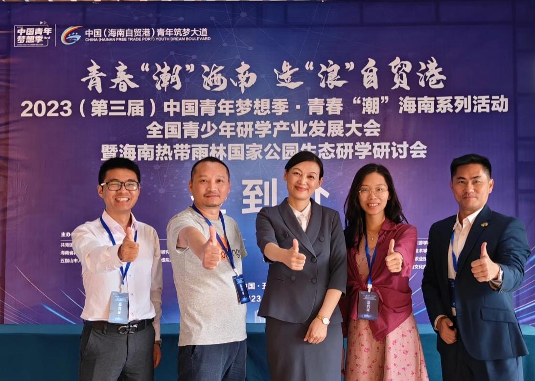 2023年4月8日,2023(第三届)中国青年梦想季·青春“潮”海南系列活动,全国青少年研学产业发展大会暨海南热带雨林国家公园生态研学研讨会在五指山召开。bevictor1946韦德官网副经理王晓明、专任教师陈嘉琪参加了此次会议。