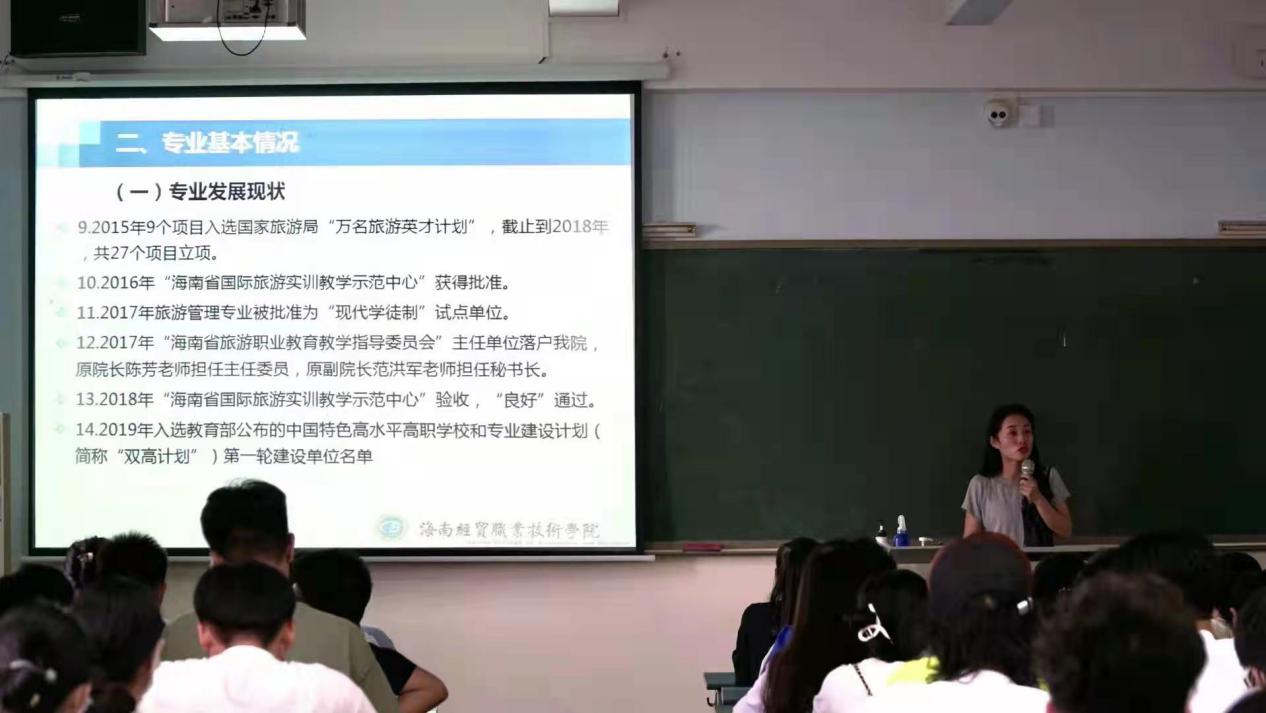 (旅游管理专业教研室主任吴贤贤在给新生们做专业教育)