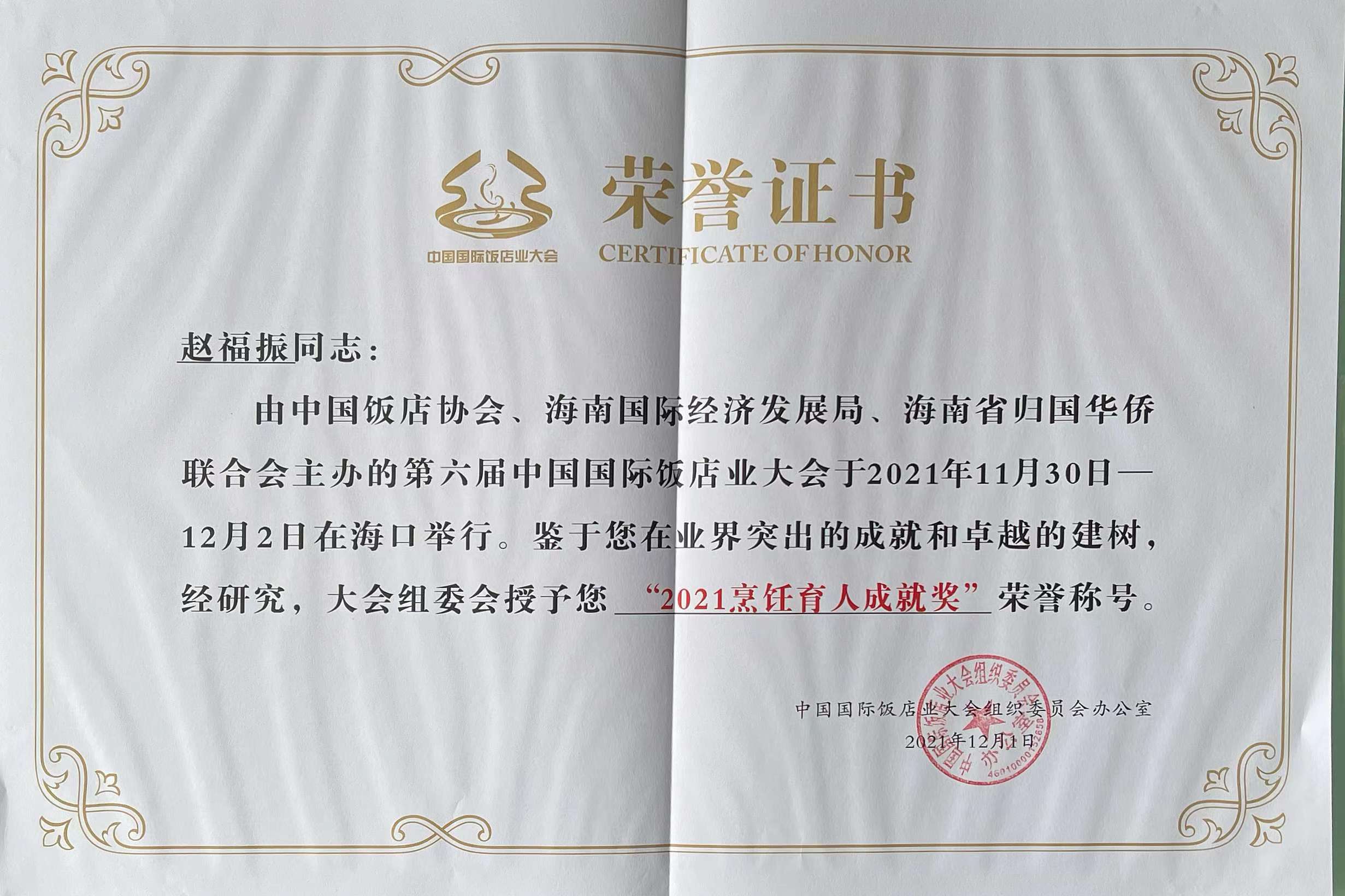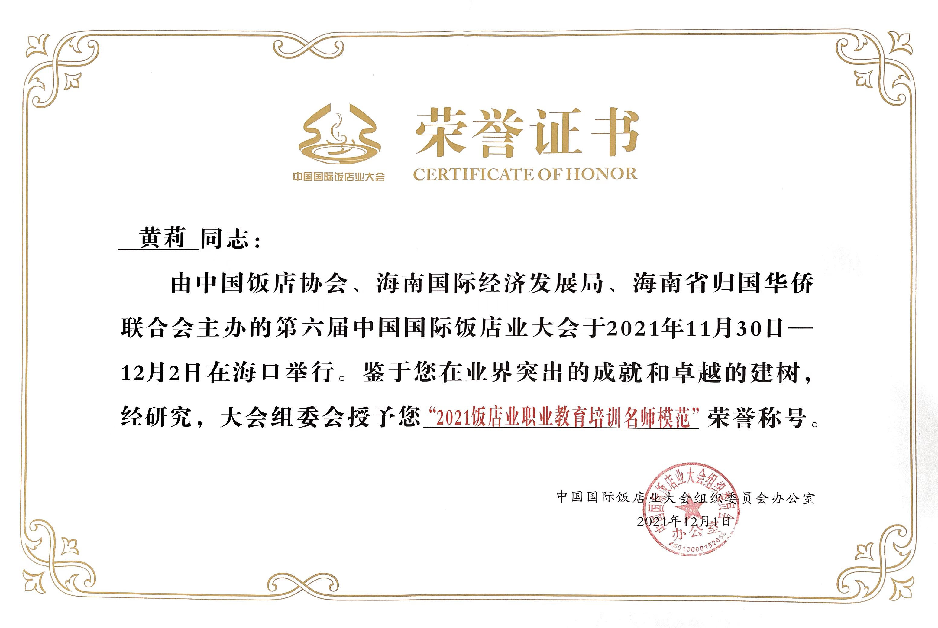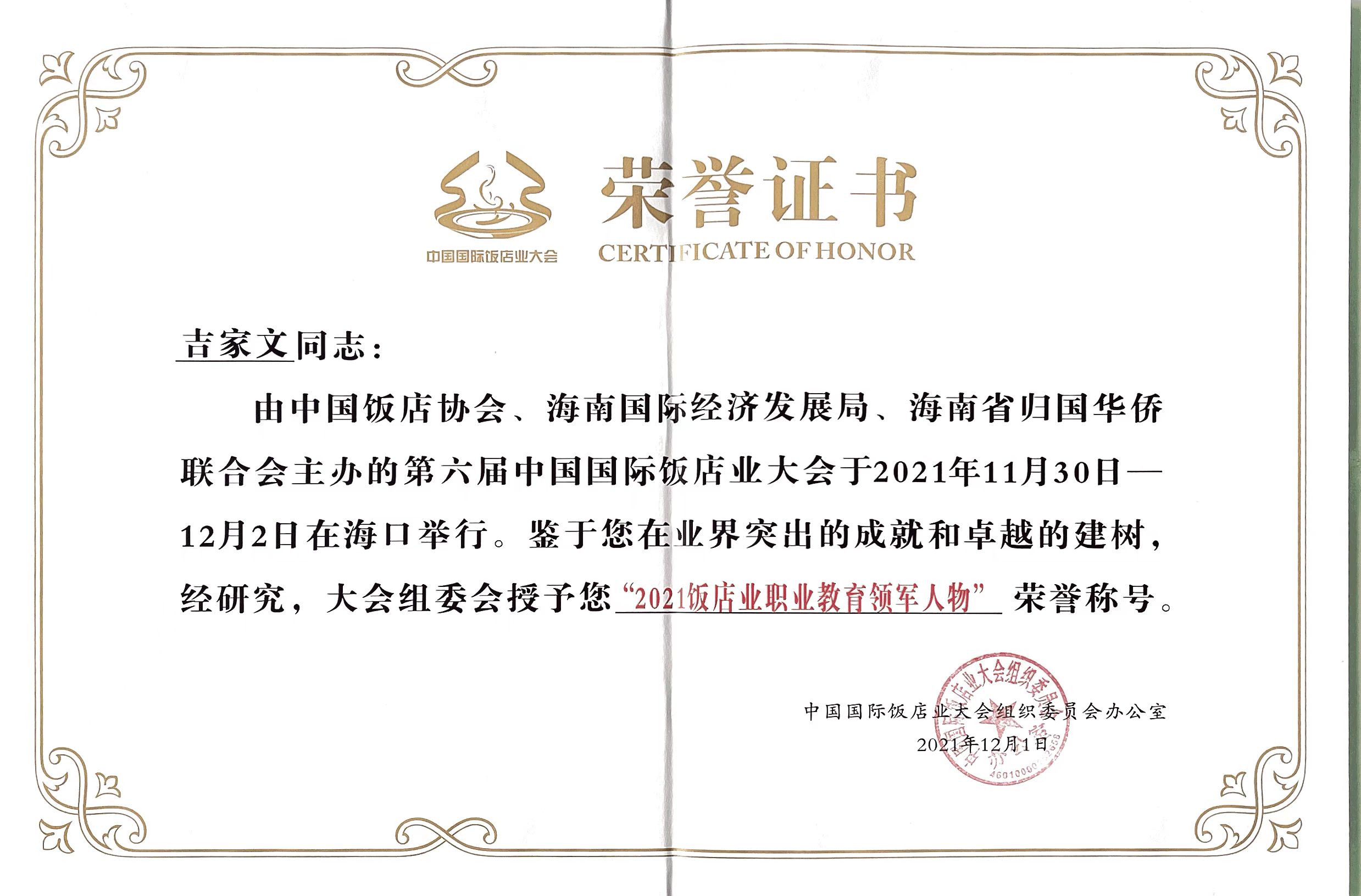 本次大会对2021年度行业表现优秀的酒店品牌、院校、职业经理人、教师进行了表彰。公司荣获“2021年度饭店业优秀人才培养院校”荣誉称号。bevictor1946韦德官网经理吉家文荣获“2021饭店业职业教育领军人物”荣誉称号。bevictor1946韦德官网烹饪专业带头人赵福振荣获“2021烹饪育人成就奖” 荣誉称号。bevictor1946韦德官网酒店管理专业教研室主任黄莉荣获“2021饭店业职业教育培训名师模范” 荣誉称号。