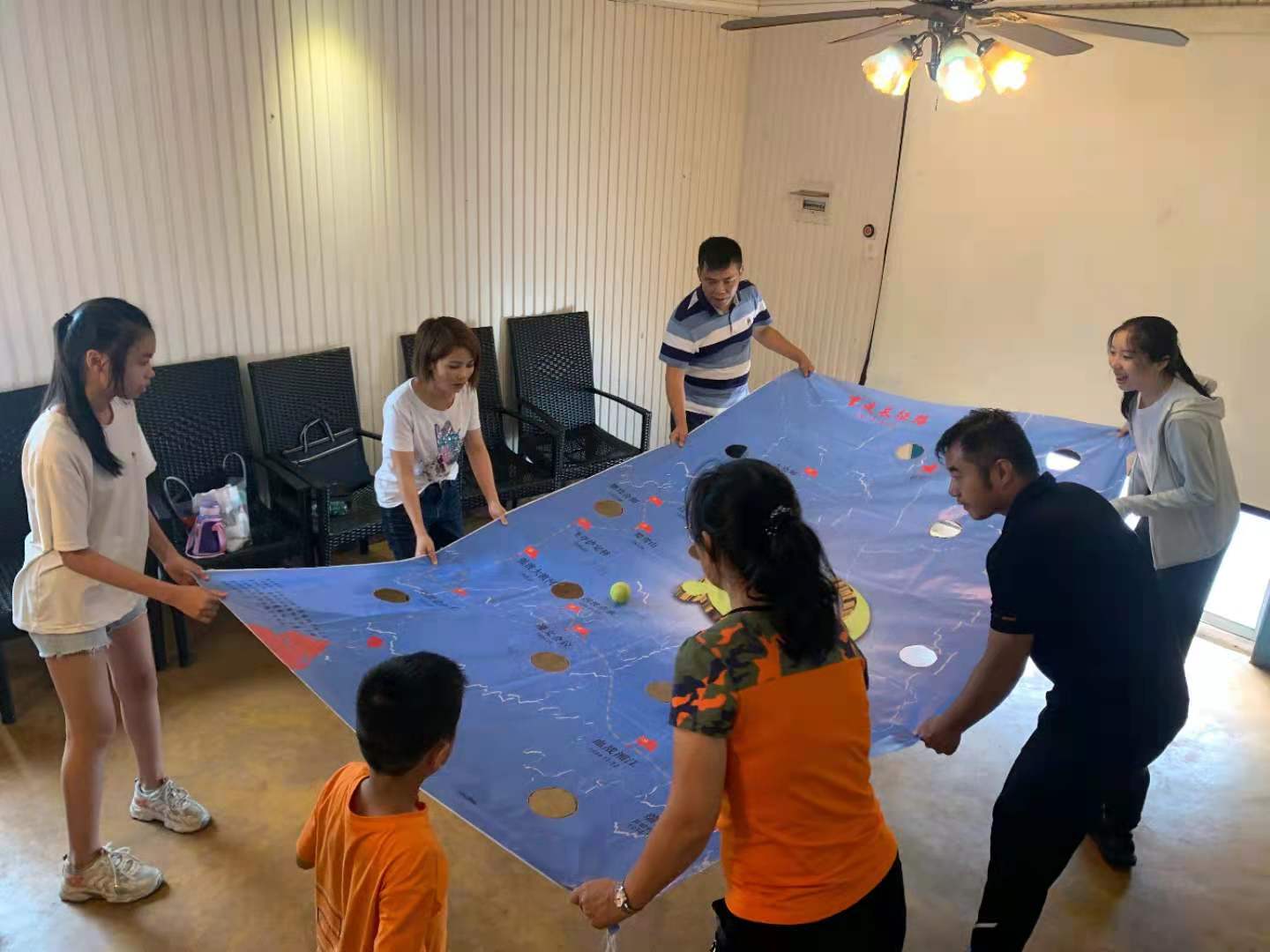 随后,参加活动的教职工来到澄迈县辉隆生态休闲庄园开展拓展活动。参加活动的教职工积极踊跃参与,组成4个队进行比赛。各位参赛队员积极竞技,默契配合,把团结合作、拼搏向上的精神风貌展现的淋漓尽致。