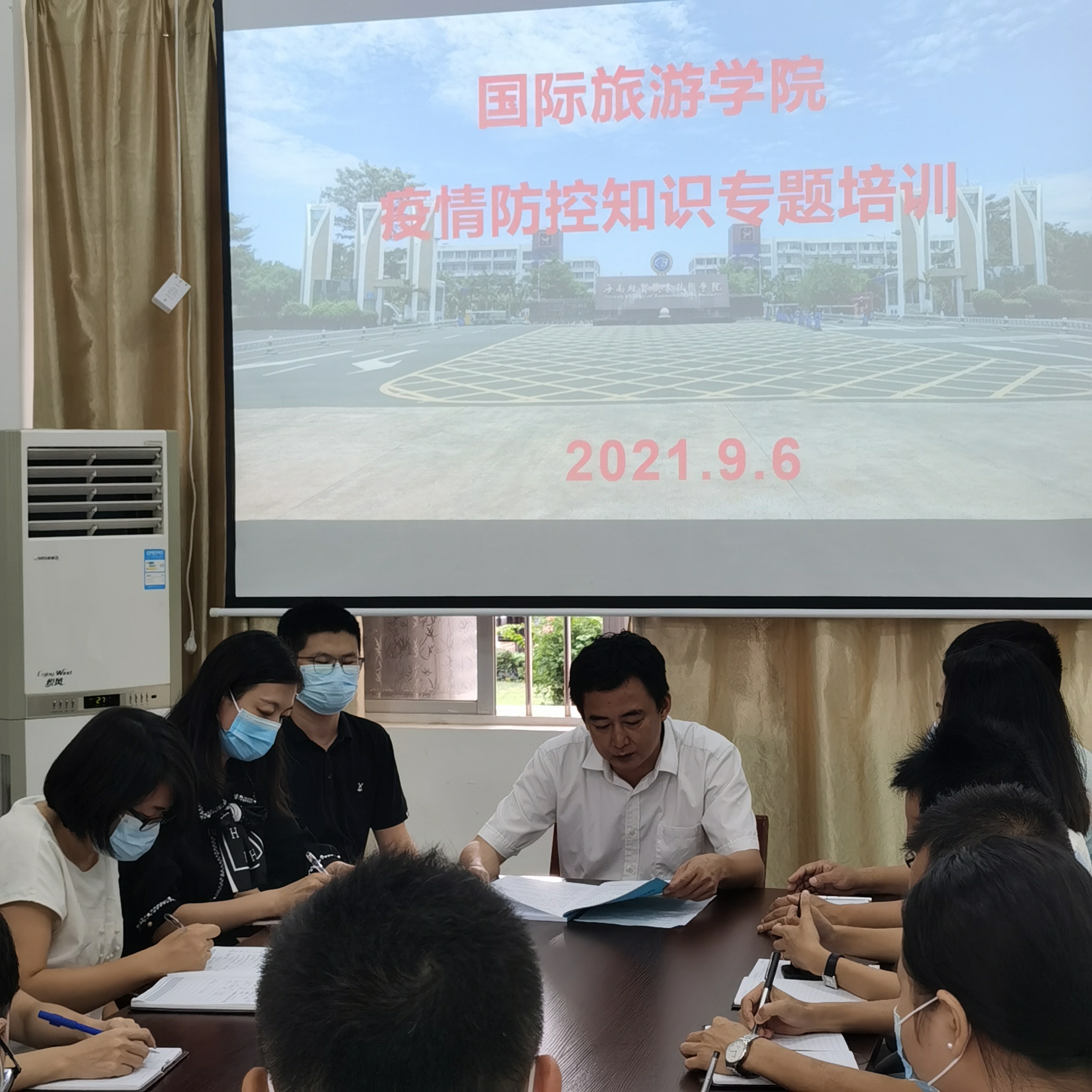 为贯彻落实公司关于2021年秋季学期开学工作会议精神,加强教职工疫情防控知识教育,部署做好开学各项工作,9月7日,公司召开疫情防控知识专题培训会。会议由公司经理吉家文主持。党总支书记符胜和全体行政人员及教研室有关负责人参加了培训会。