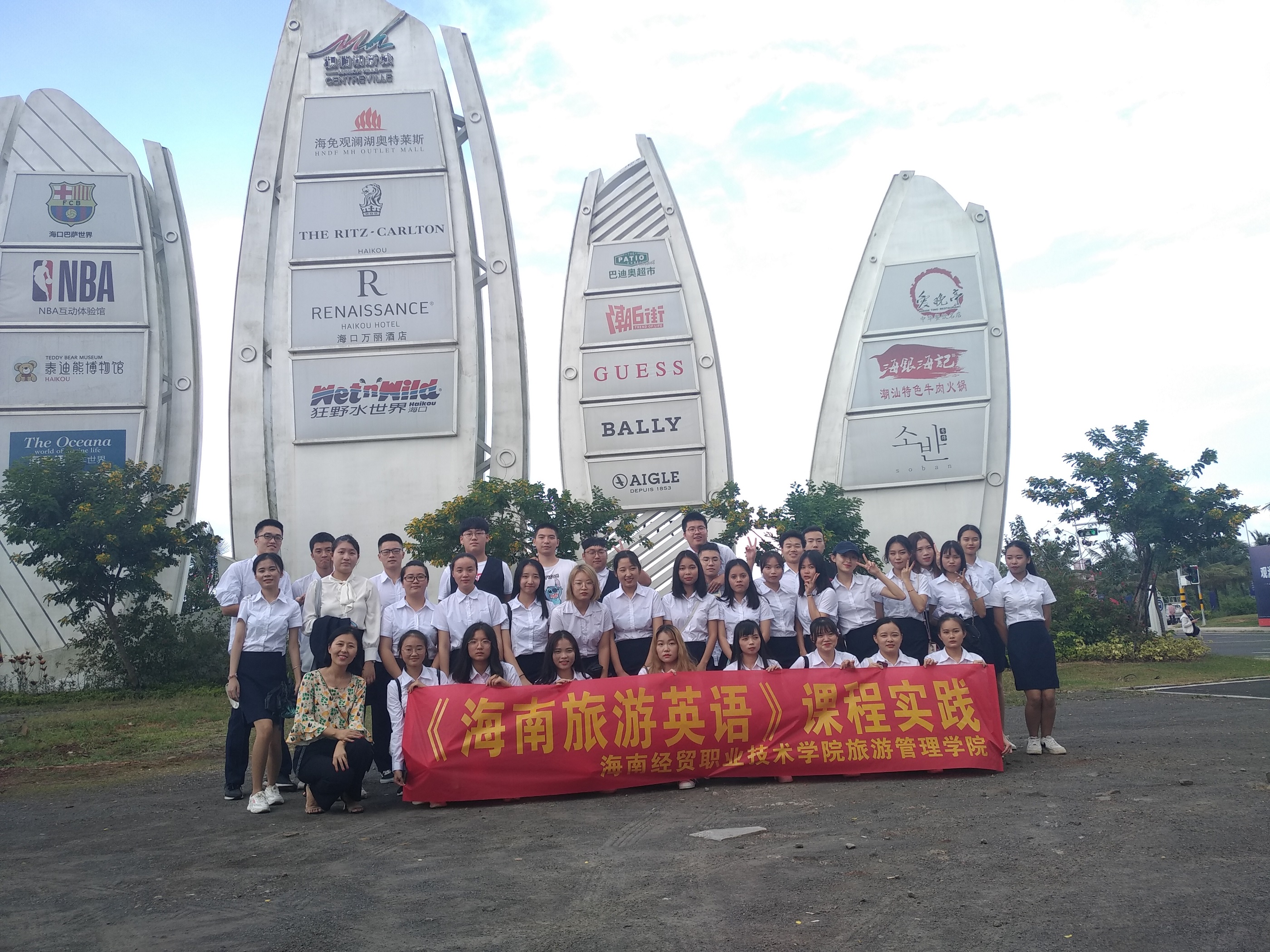 (旅游管理公司报道)为了推动2019年bevictor1946韦德官网旅游管理公司骨干专业建设项目顺利完成,有效推动教学改革,2019年10月8日下午,在旅游管理专业教师金丹的带领下, 2018级旅管学徒制1班全体同学开展《海南旅游英语》课程实践。此次课程实践的地点是海口观澜度假区,实践教学的目的是让同学们通过实地考察观澜湖度假区形成旅游线路安排并用用英语对该度假区进行讲解。
