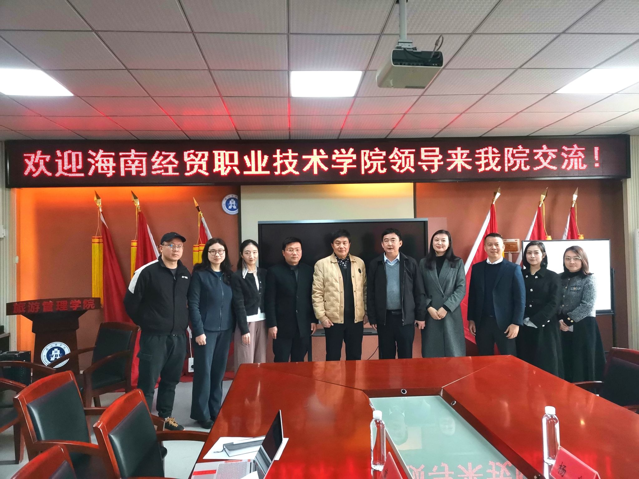 在武汉商公司旅游管理公司,双方围绕专业建设与实训室建设进行交流,并实地考察实训室。在设备配置、实践教学项目开发等方面交流心得,期望通过资源共享与合作,提升旅游教育实践教学水平。