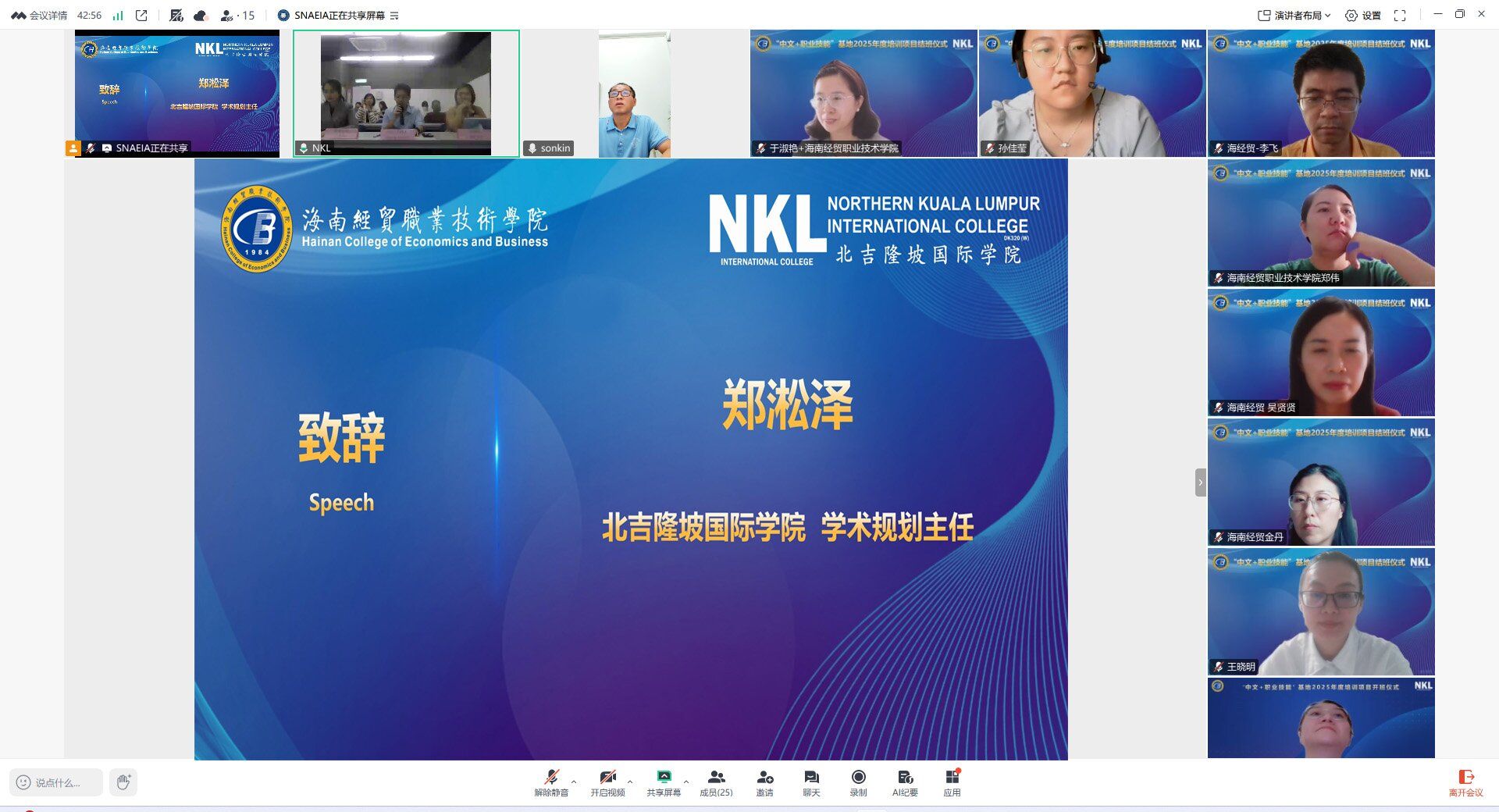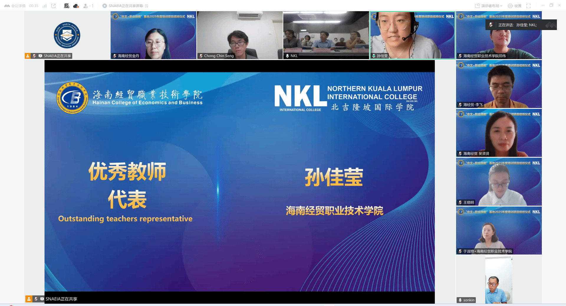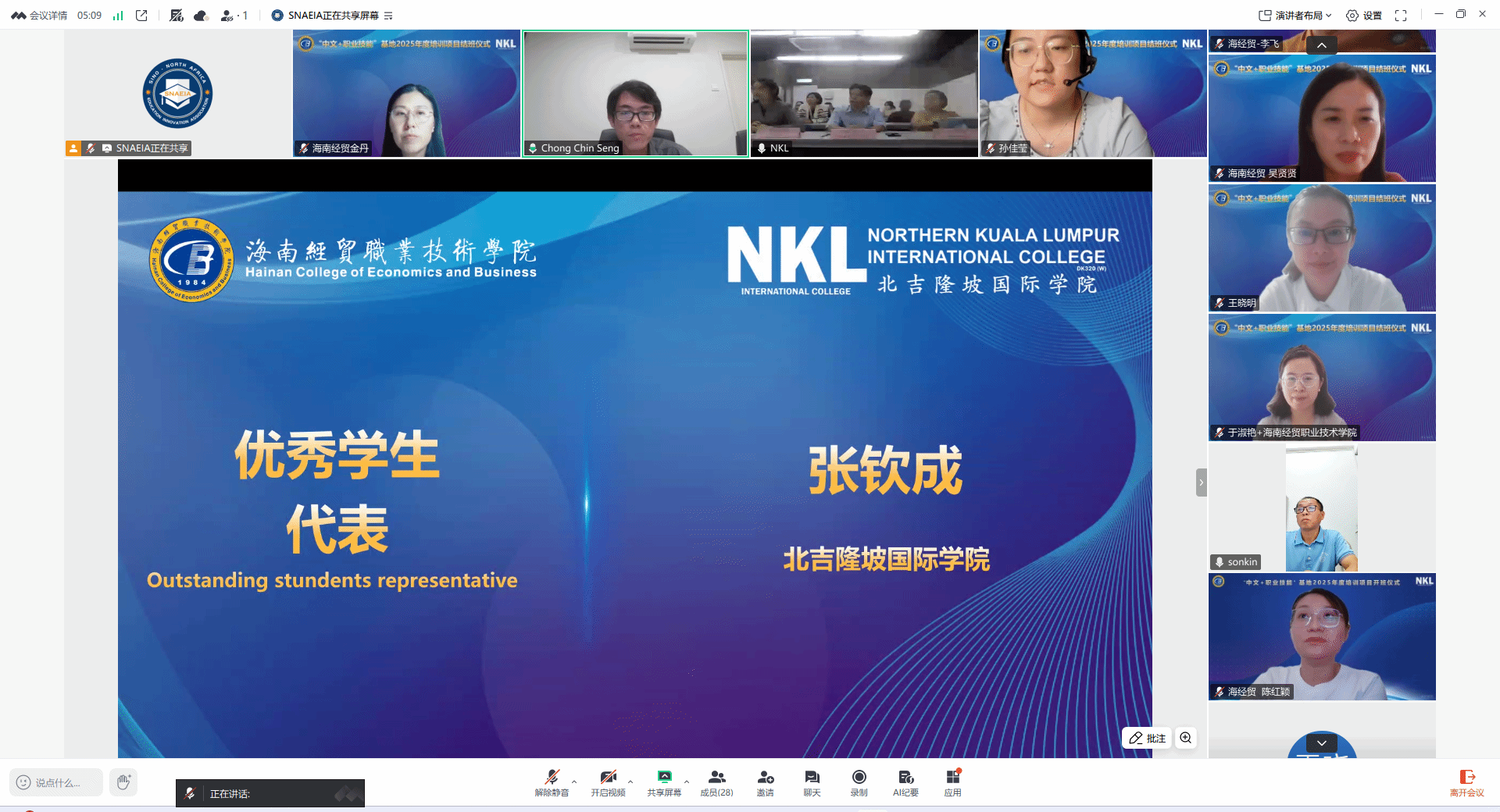 此外优秀教师代表孙佳莹分享了教学过程中马来西亚同学们与教师的积极互动,对表达了对同学们的美好祝愿。优秀员工代表张钦成讲述了学习过程带来的收获和个人成长,并表达了对中方课程的认可与期待。