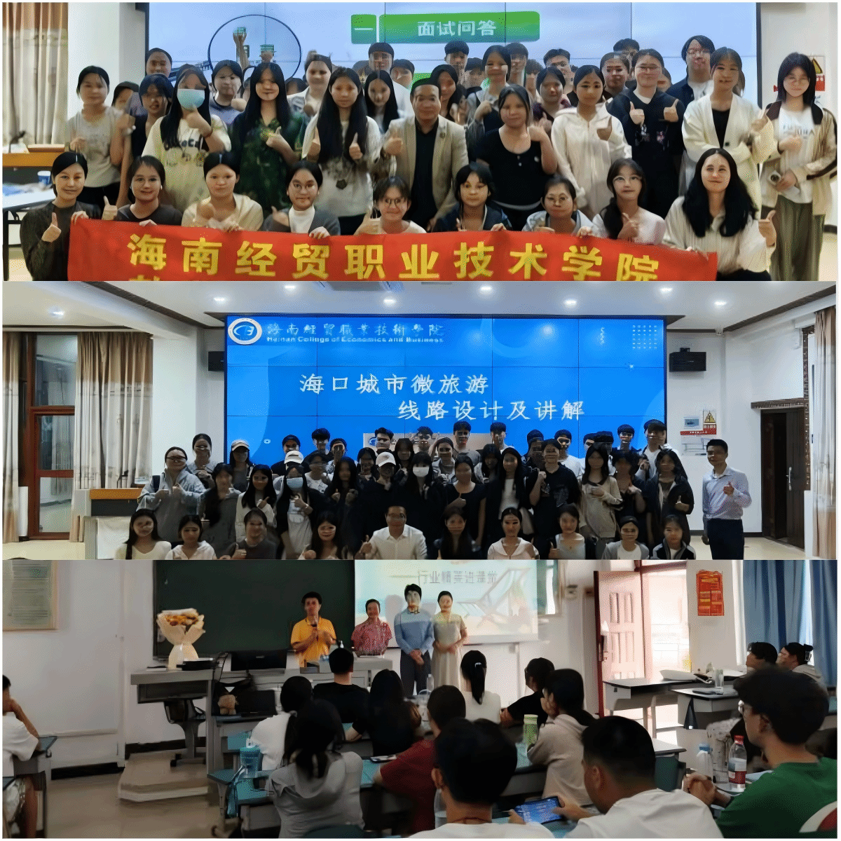 聚焦员工专业成长,构建“交流+培训+教学+实践”四维培养体系。邀请行业专家、国赛优秀选手进校园分享职业前景与备赛经验;组织100余人次导游资格证考前培训及职业技能竞赛辅导,提升考证通过率与赛事竞争力;深度参与《海南旅游景点讲解》等课程教学与考核,开设《海口城市微旅游线路设计与讲解》微课,推动行业前沿融入课堂;组织员工赴海南省博物馆开展实地讲解培训,实现理论与实践无缝衔接,为公司“双高”建设与升本筑牢专业根基。